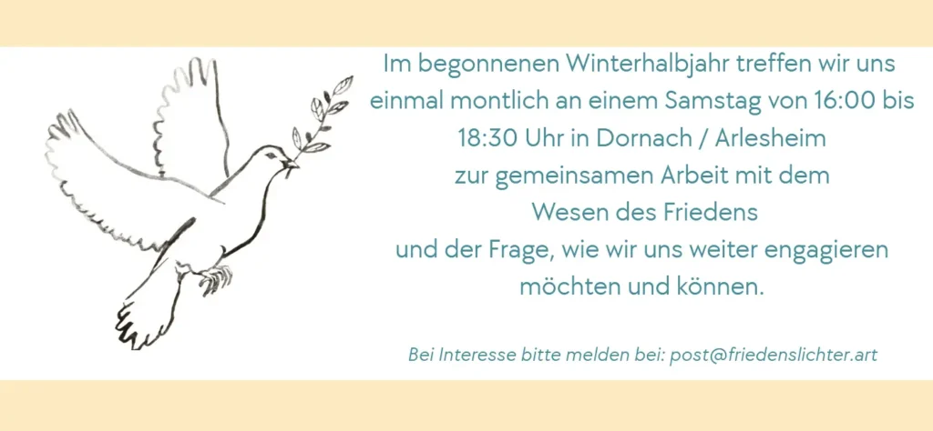 Neben diesen kleinen Reden gab es wieder besondere musikalische Einlagen. So spielte das professionelle Planetenquartett das Streichquartett von Viktor Ullmann, das er im Konzentrationslager Theresienstadt (DE) komponierte, Elizabeth Davidson sang ein das amerikanische Protest- und neuerdings auch Friedenslied «We shall overcome» und Christian Loch (Monochord) spielte mit der Cellistin Birgit Böhme eine musikalische Improvisation zu einer altindischen Friedenshymne. Neben der feierlich-friedlichen Stimmung waren die vielen kleinen, von Freude und Zustimmung getragenen Begegnungen mit dem Publikum ein besonderes Ereignis.